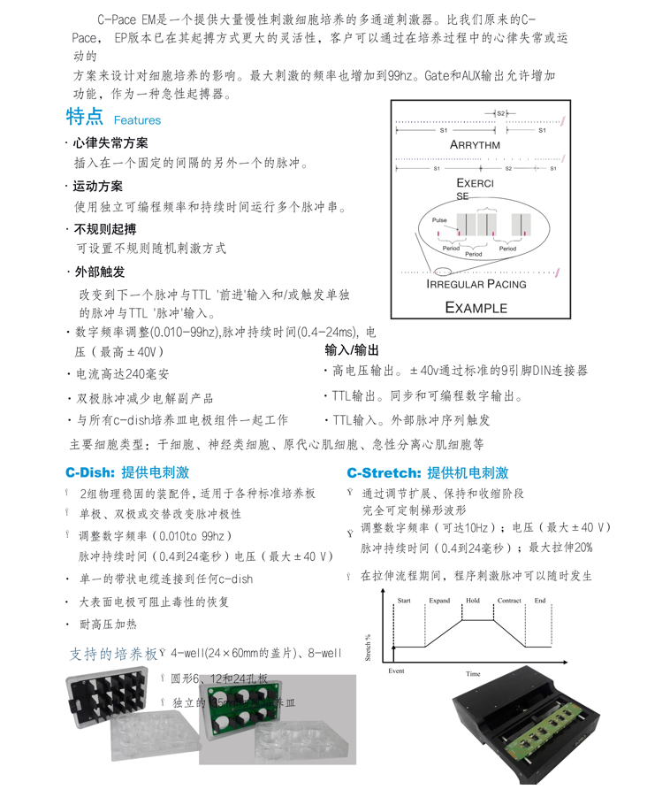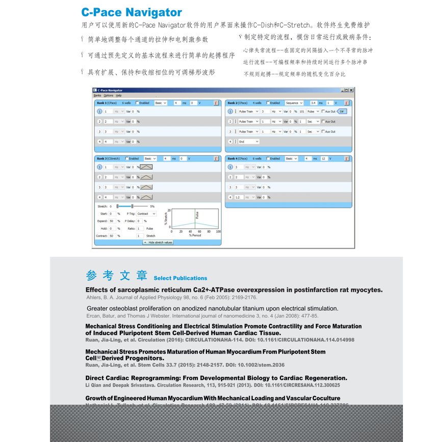 可在细胞培养过程中通过给以细胞电刺激,来防止其脱分化,保持肌细胞的杆状形态及纹状形态和正常生理功能。可做细胞模型,可保持细胞活性,可做细胞损害实验,主要是培养骨骼肌、心脏心肌细胞进行刺激。